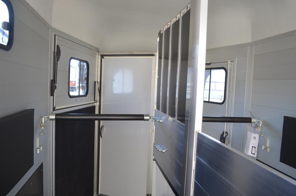 bewegliche Alu Mitteltrennwand mit Hengstgitter und ABS Sichtschutz