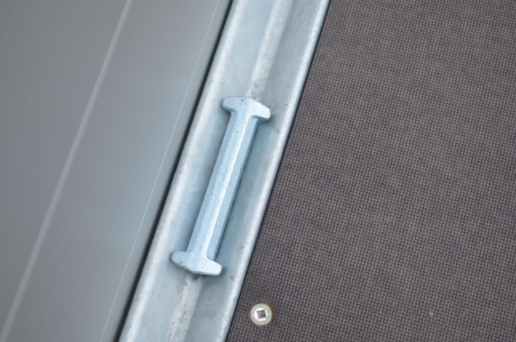 - Scharniere für Heckklappe am Rahmen verschweißt und mit Haken für Ladungssicherung wie z.B. Netze