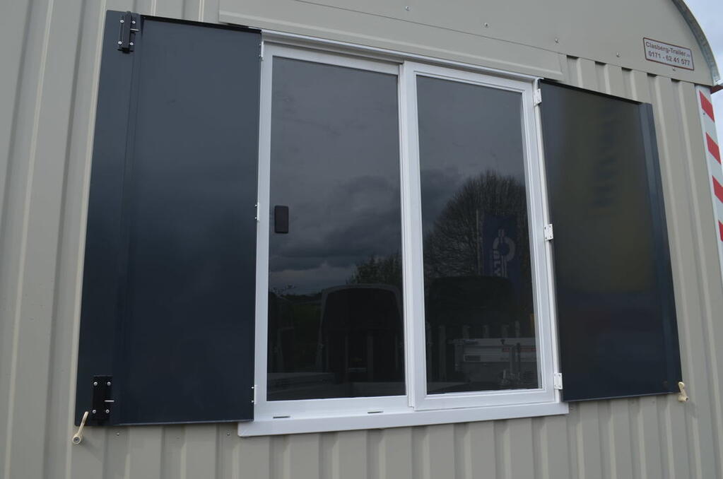 - Schiebefenster, Sicherheitsverglasung, 750 x 850, Stahlläden von innen verriegelbar