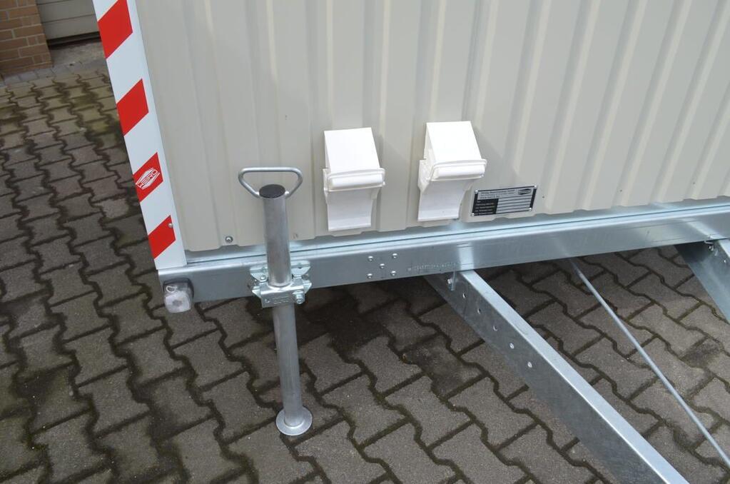 - E-Installation: 1 Stck. CEE- Eingang 230V/16A, nach DIN-VDE, 1 Stck. Schalter, 1 Stck. Steckdose, 1 Stck. Korblampe, 230V/60W