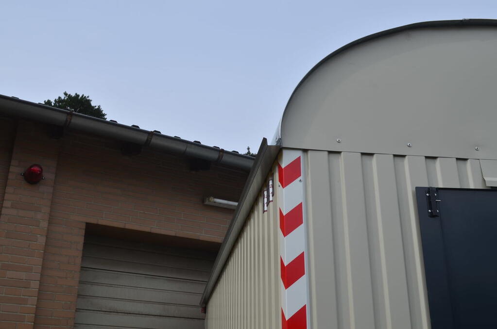 - Windfang als Vorhang ausgebildet, schwer entflammbar